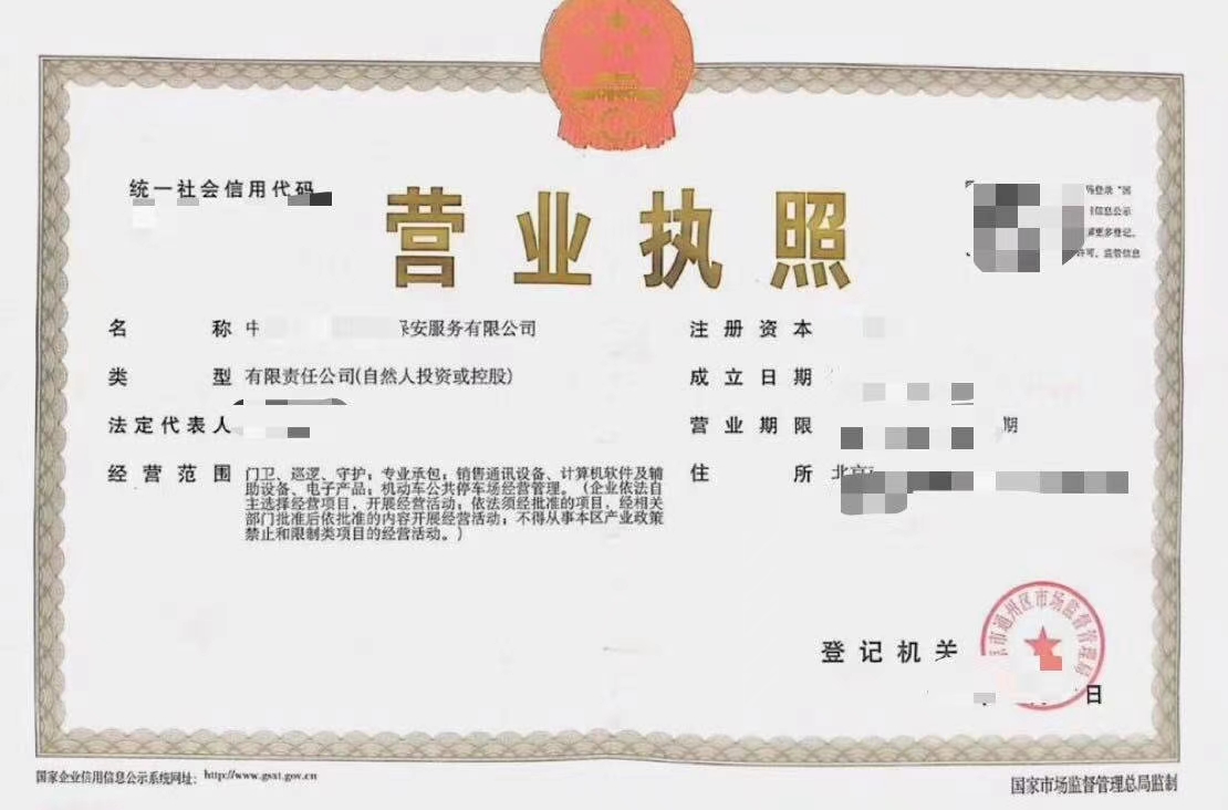 經營范圍:門衛、巡邏、守護;專業承包;銷售通訊設備、計算機軟件及輔助設備、電子產品;機動車公共停車場管理。